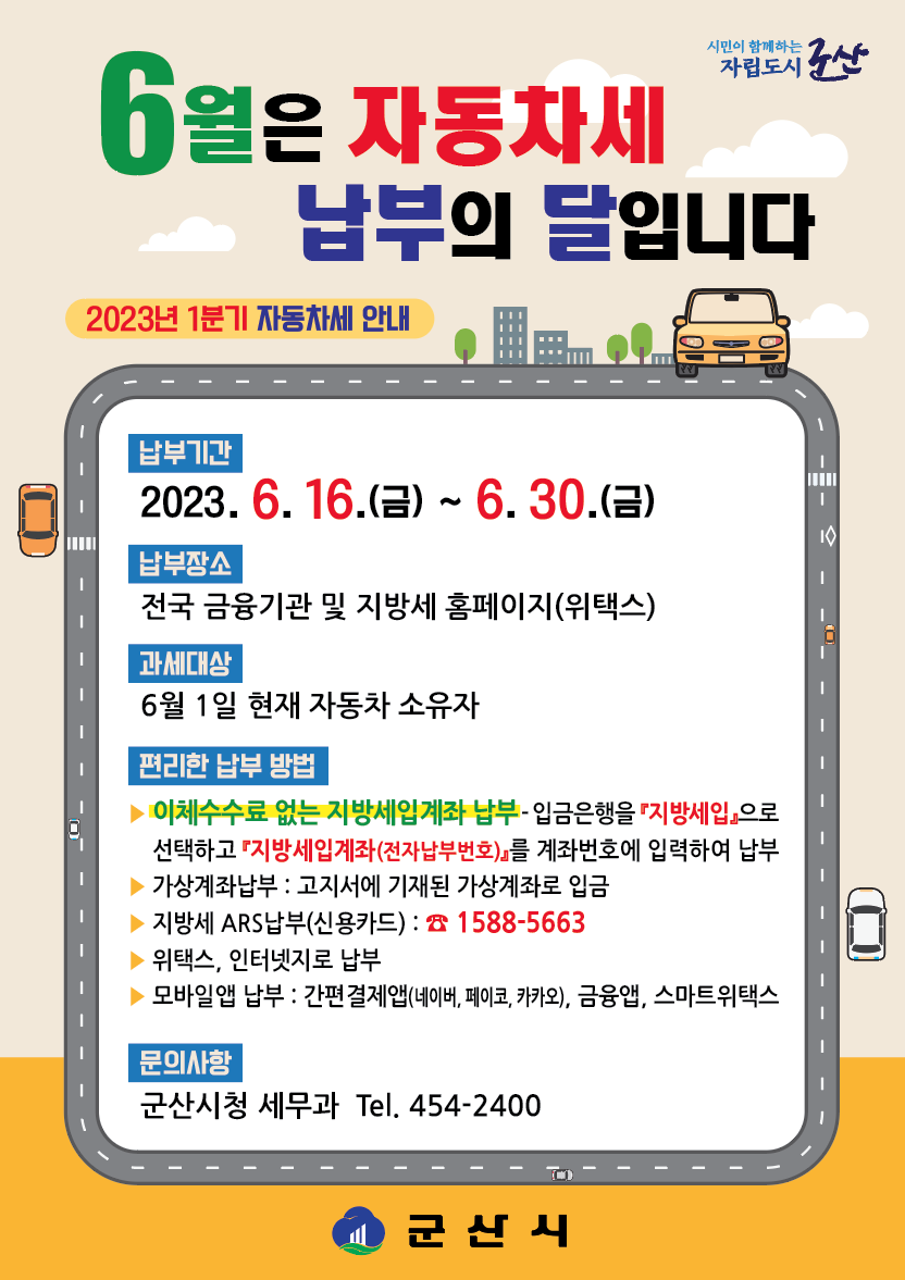 6월은 제1기분 자동차세 납부의 달입니다.