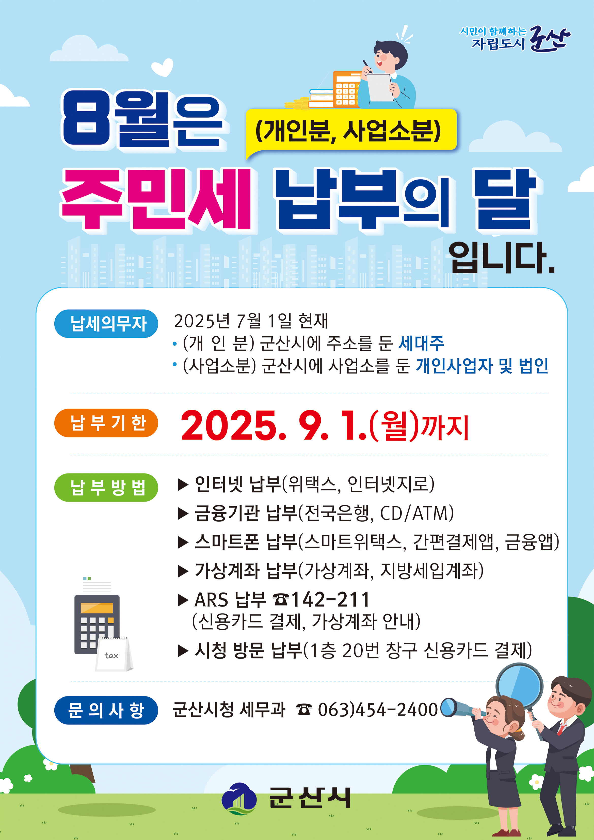 - ARS 지방세 납부시스템: 142-211(신용카드 결제, 가상계좌 안내)