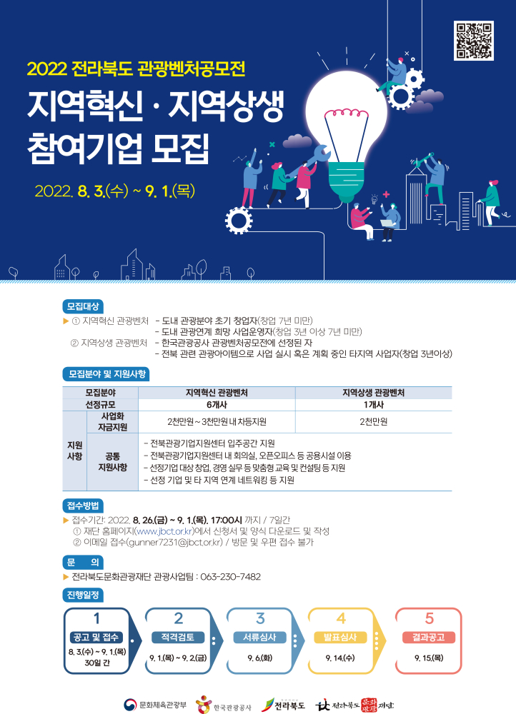 | 13 | 2022 전라북도 관광벤처공모전(지역혁신, 지역상생) 참여기업 모집 홍보 |