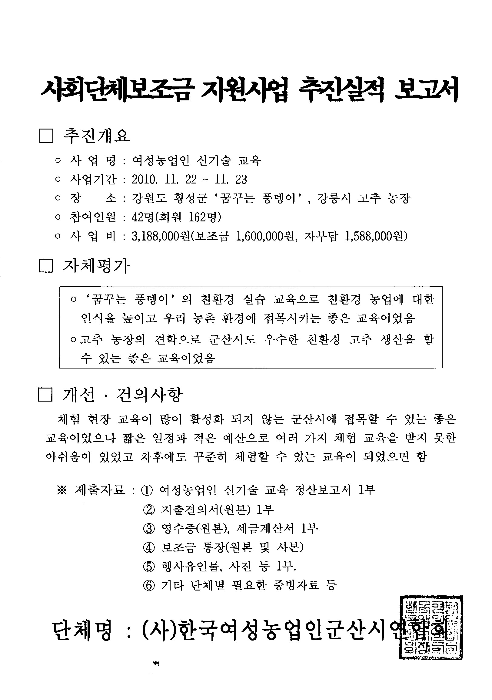 | 168 | 2010 사회단체 보조금 추진실적 및 정산 결과 보고(군산평생교육진흥연구회) |