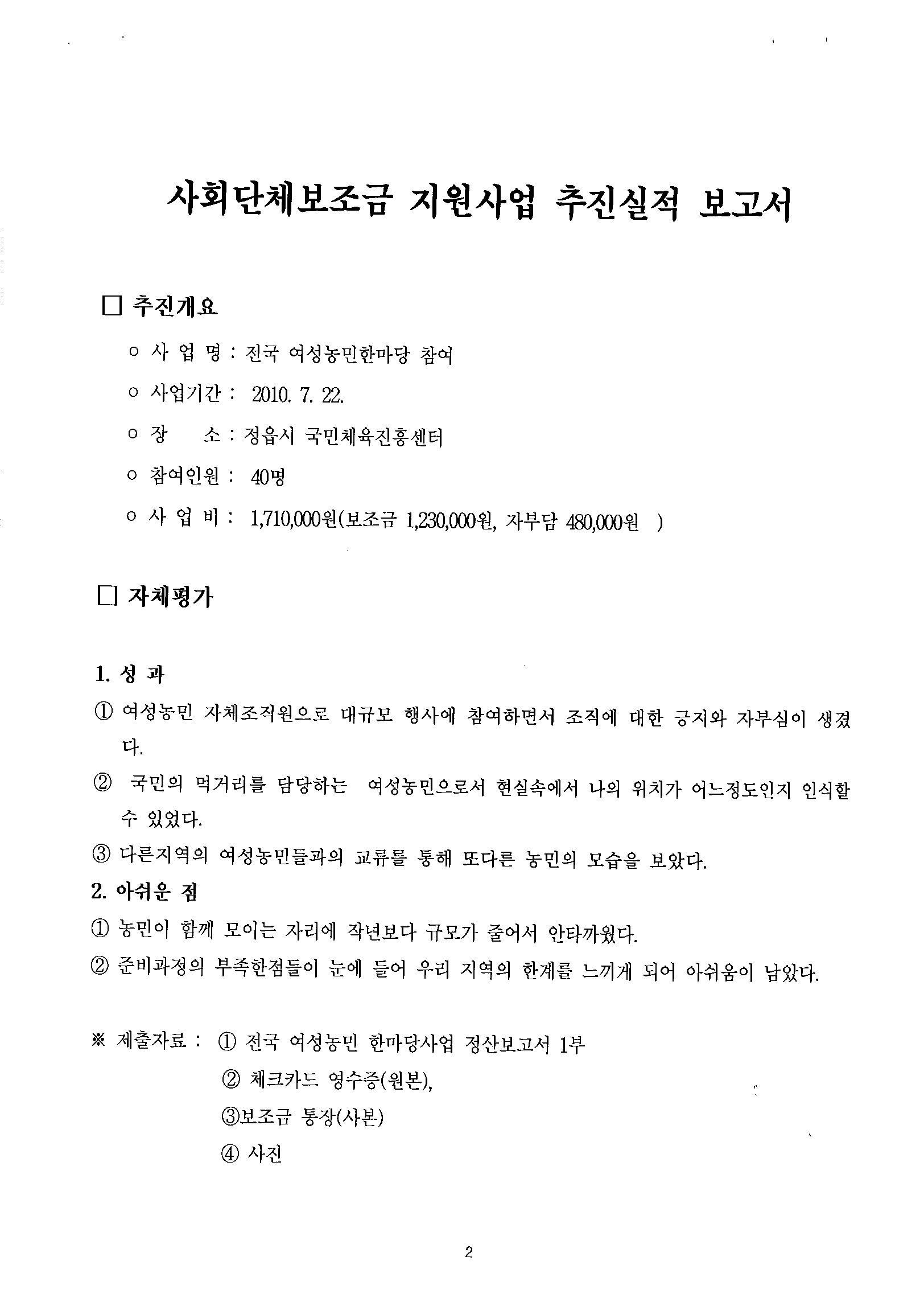 | 159 | 2010년 농업경영인 가족 체육대회 사업정산 |