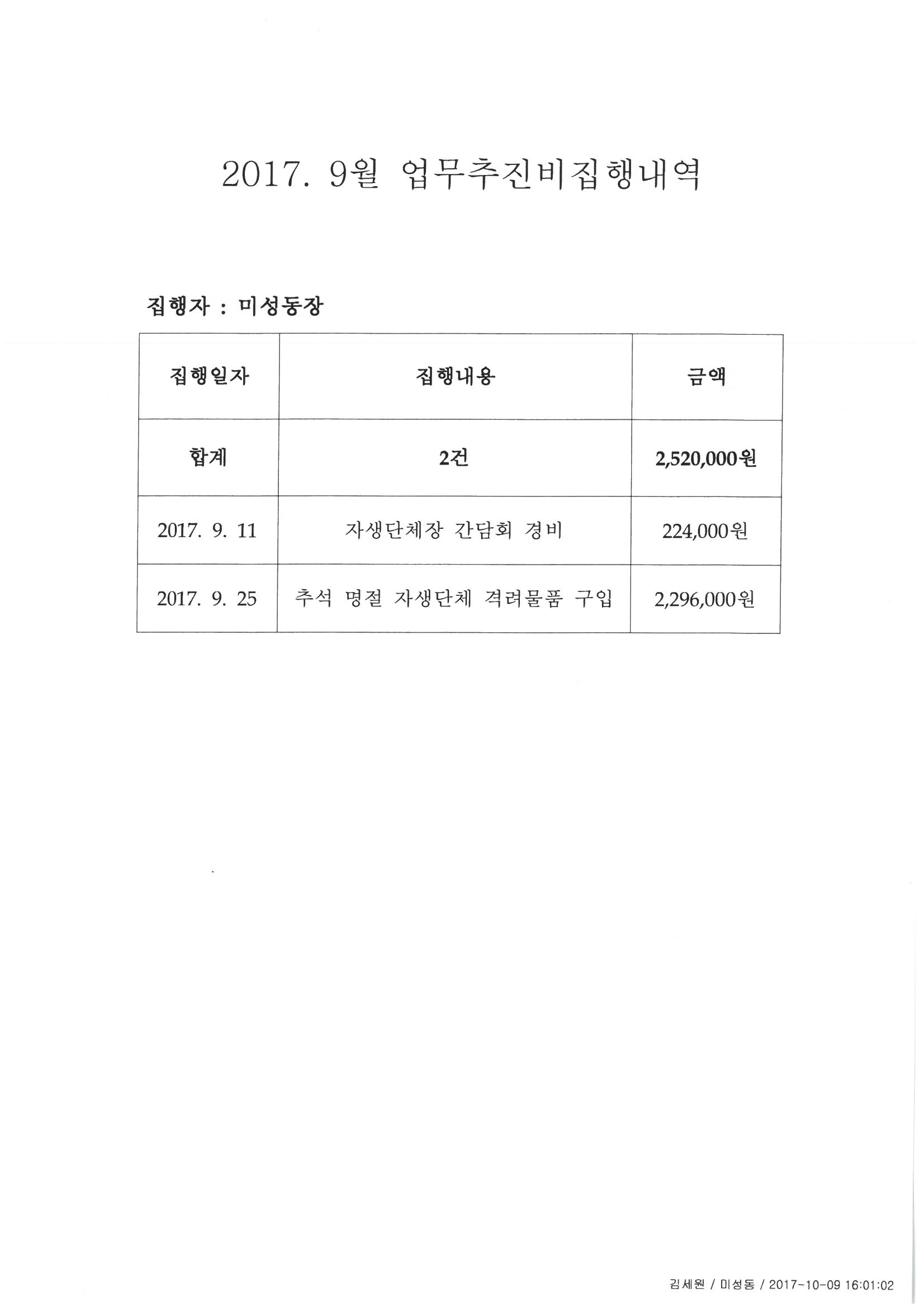 | 658 | 2017년 9월 중 업무추진비 집행내역(미성동) |