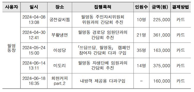 2024년 2~3분기 월명동 업무추진비 사용내역을 붙임과 같이 공개합니다.