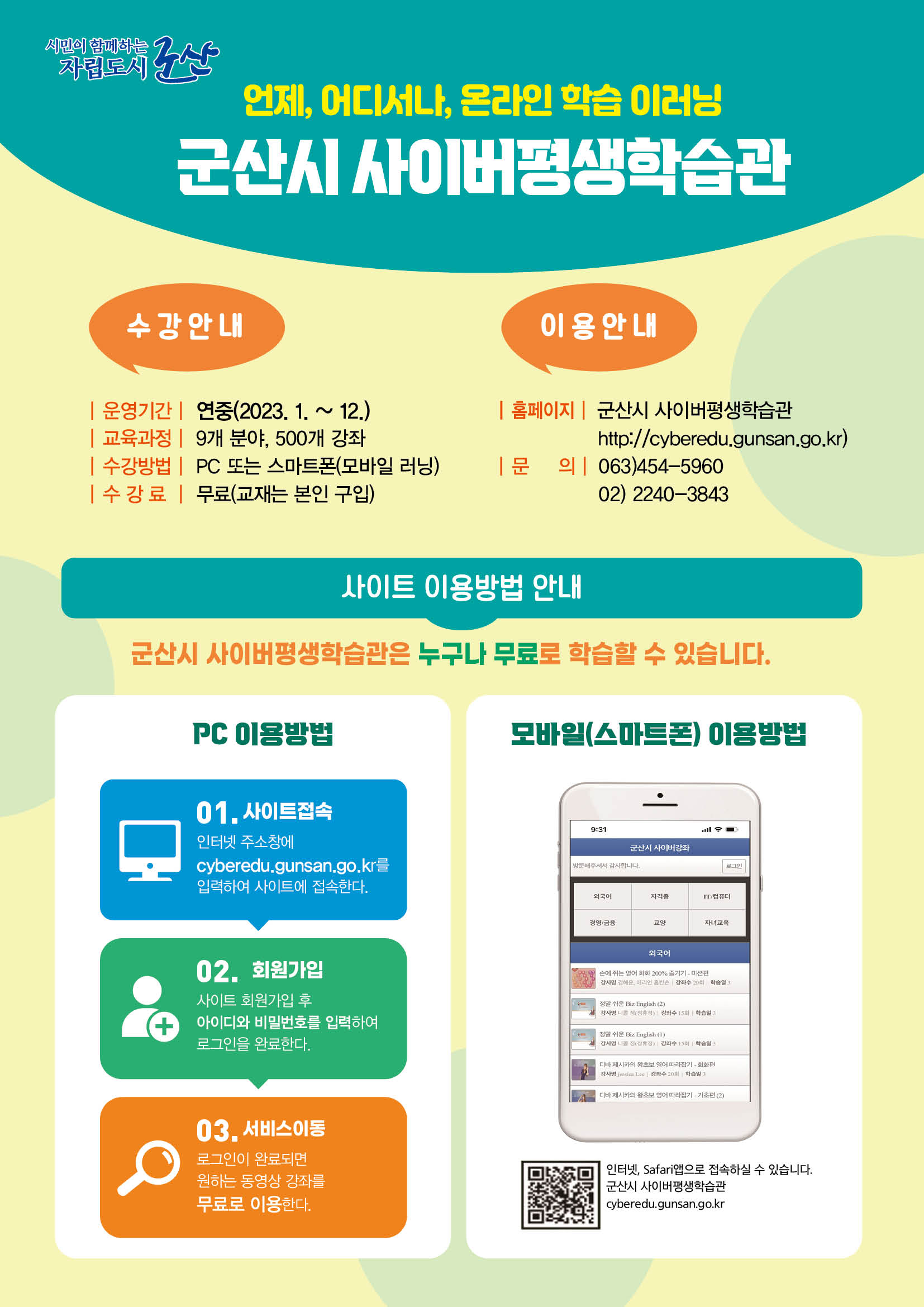 ○ 수강신청 : 홈페이지 / 군산시 사이버평생학습관