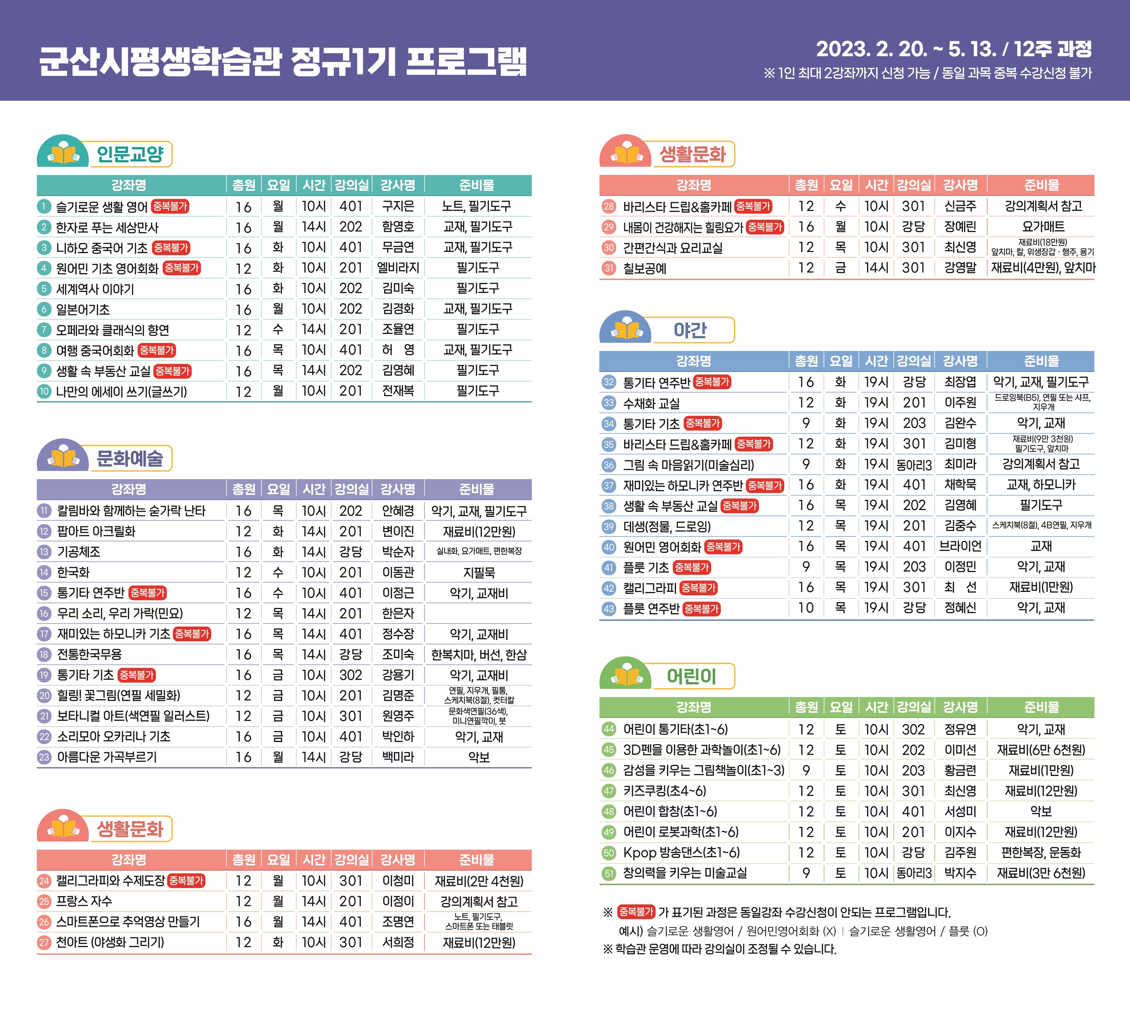 □ 모집강좌 : 51개 강좌, 683명