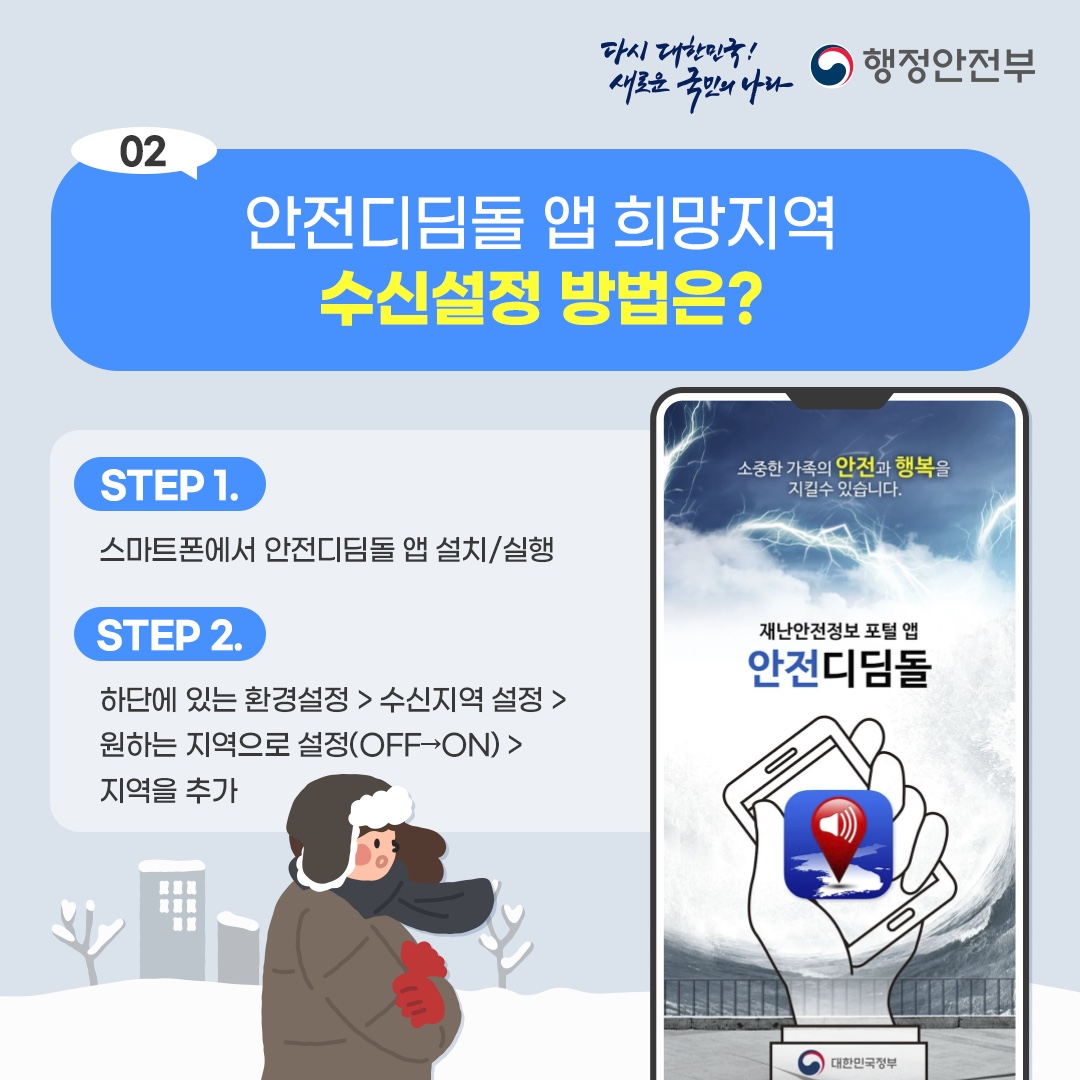 행정안전부에서는 휴대전화 사용이 익숙치 않은 노년층 등 대설 한파 취약계층의
