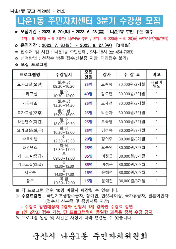 | 168 | 2023년 3분기 주민자치프로그램 수강생 모집안내 |