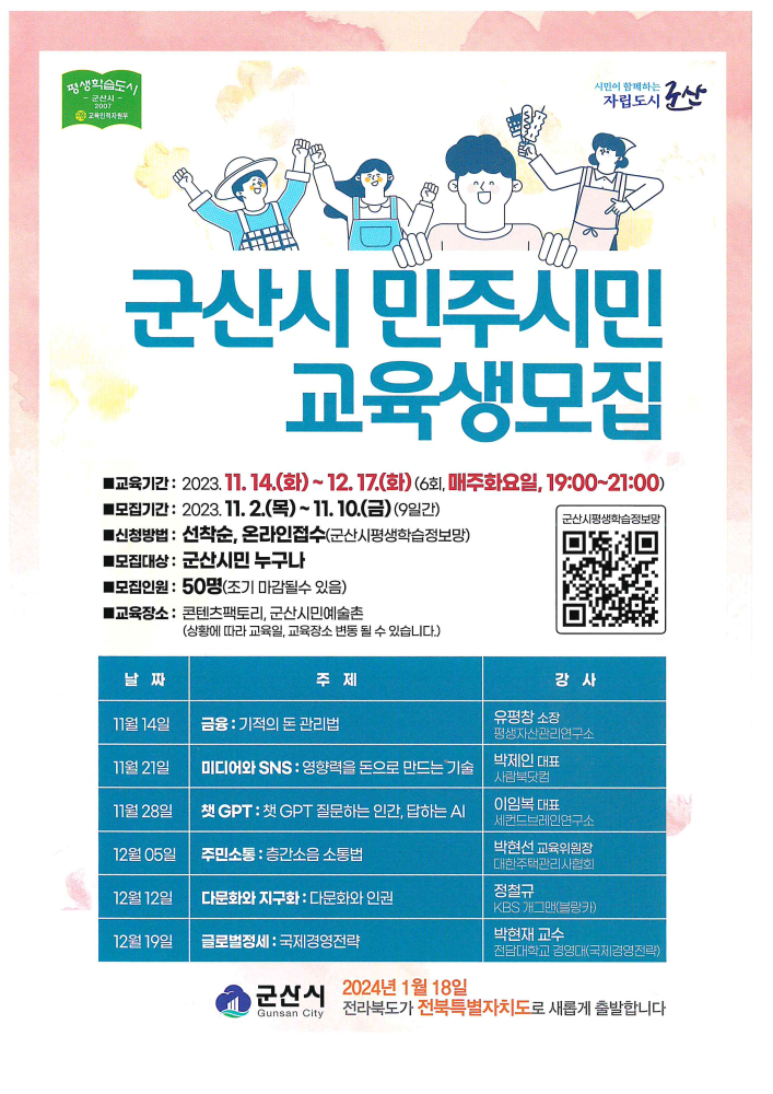 | 170 | 군산시 민주시민 교육생 모집안내 |
