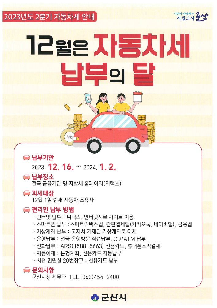 | 175 | 2023년도 2분기 자동차세 안내 |