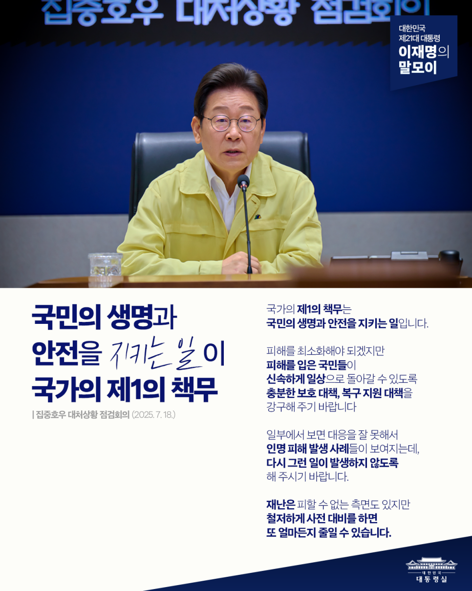 8495 청와대 이재명 대통령 전국 공무원에게 재난지역 피해에 더욱 힘셔주시길바랍니다 다운받기 *** 25.07.19 4418