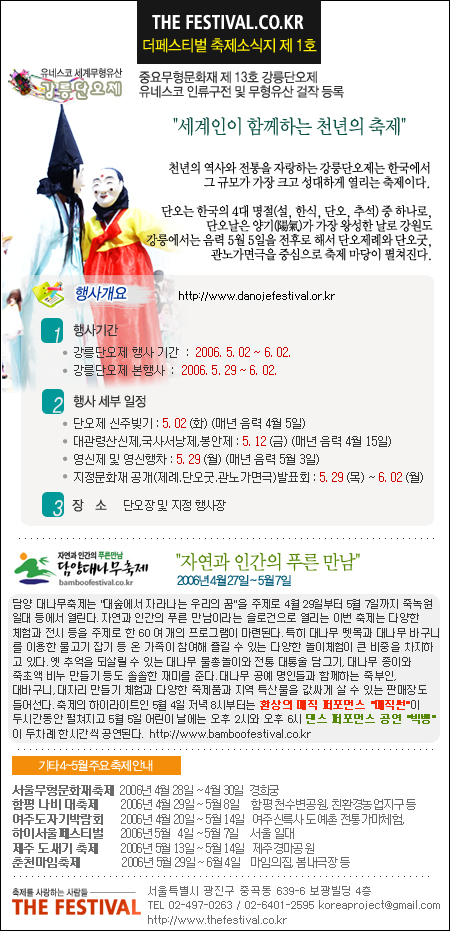 261 천년의 혼을 담은 강릉단오제 그 막이 곧 열립니다. 다운받기 *** 06.04.26 8477
