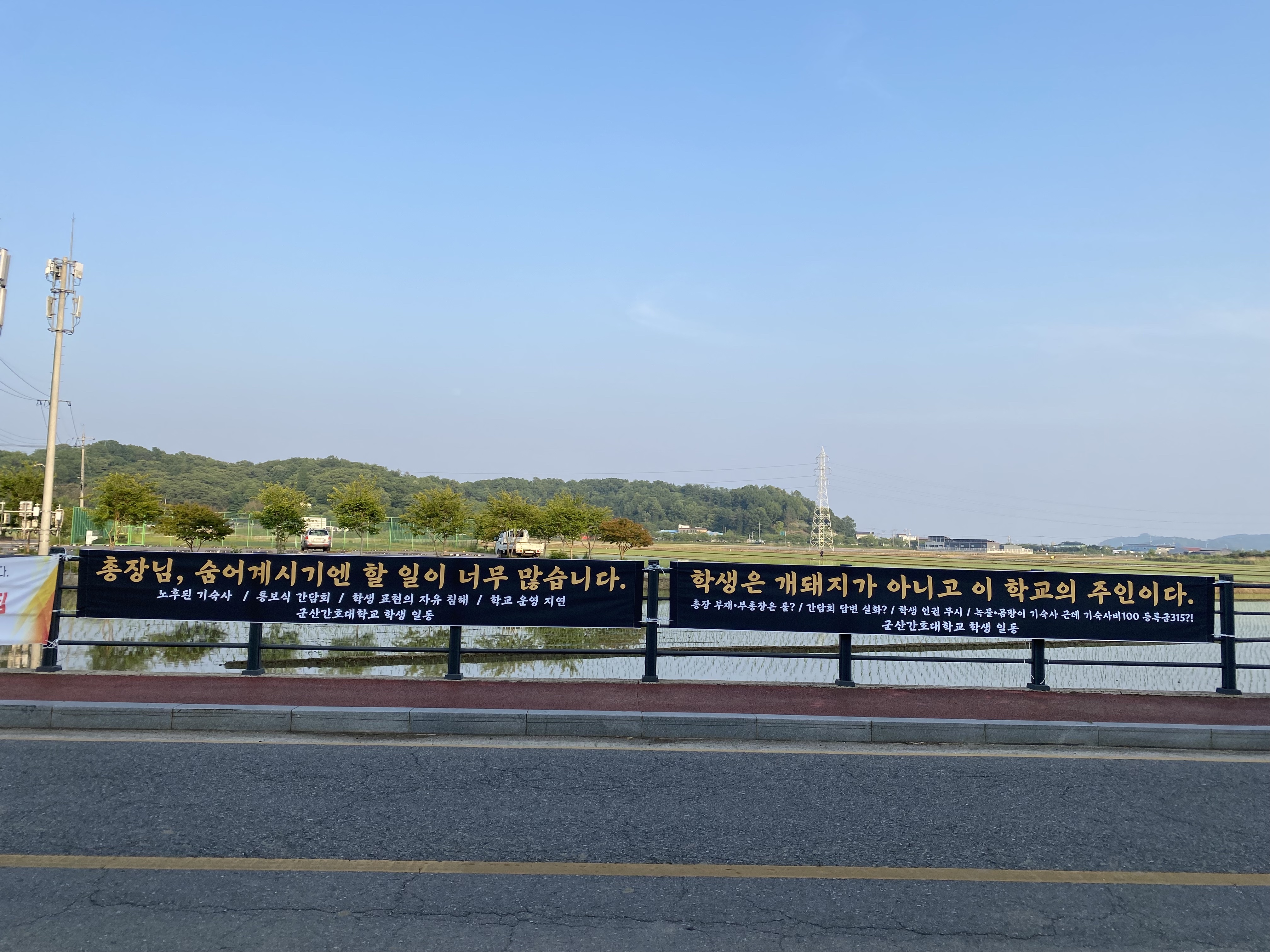 표현의 자유가 보장된 군산간호대학교 학생들이 현수막을 학교 내부에 걸어야 하는데, 학교 내부에는 걸지 못하고, 학교 밖에 걸 수 밖에 없는 이유는 무엇일까요?