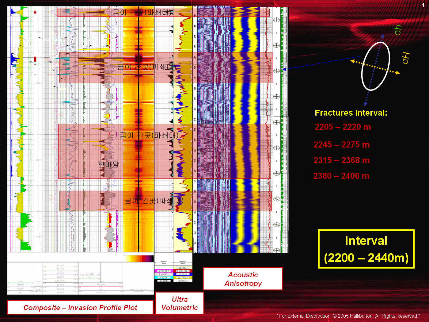 핼리버튼의 분석보고서중 그림을 보시면 4개의 금이간곳(파쇄대)를 보실수 있습니다.