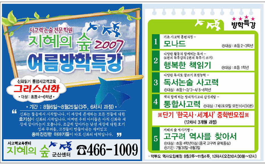 ♣문의 - 논술전문학원 '지혜의 숲' (지곡동 나운마트 옆) 466-1009