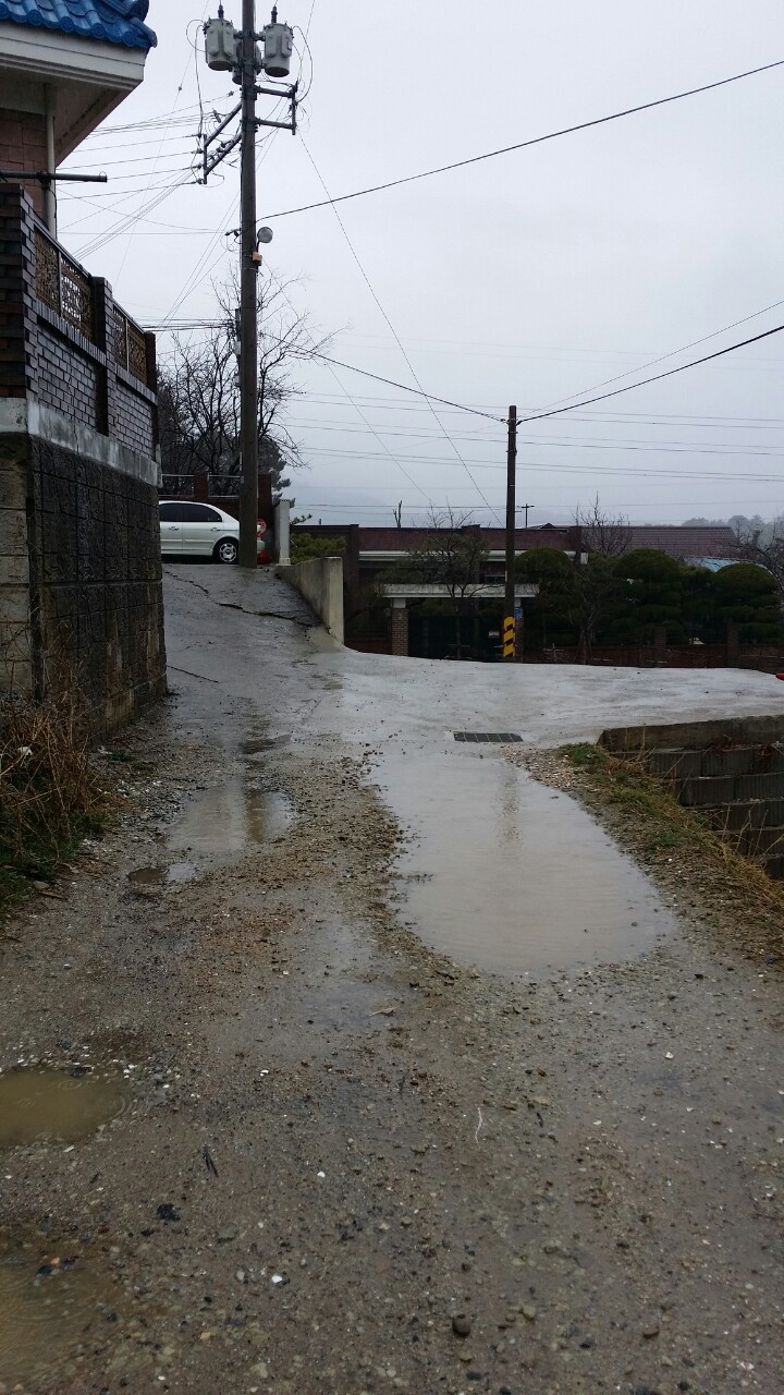 비가 오면 웅덩이가 생겨 노약자,어린아이가 신발을 버리지 않고는 건너갈 수가 없습니다.