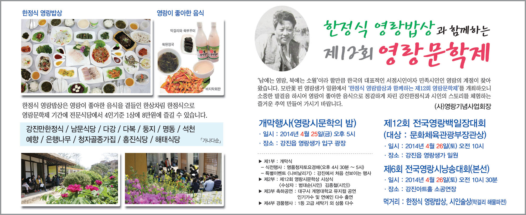 한정식 영랑밥상과 함께하는 제12회 영랑문학제가 열립니다.