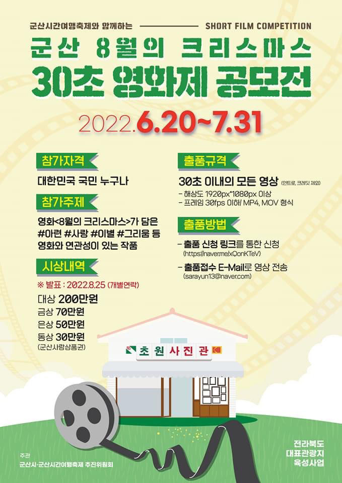 | 15 | 군산 8월의 크리스마스 30초 영화제 공모전 안내 |