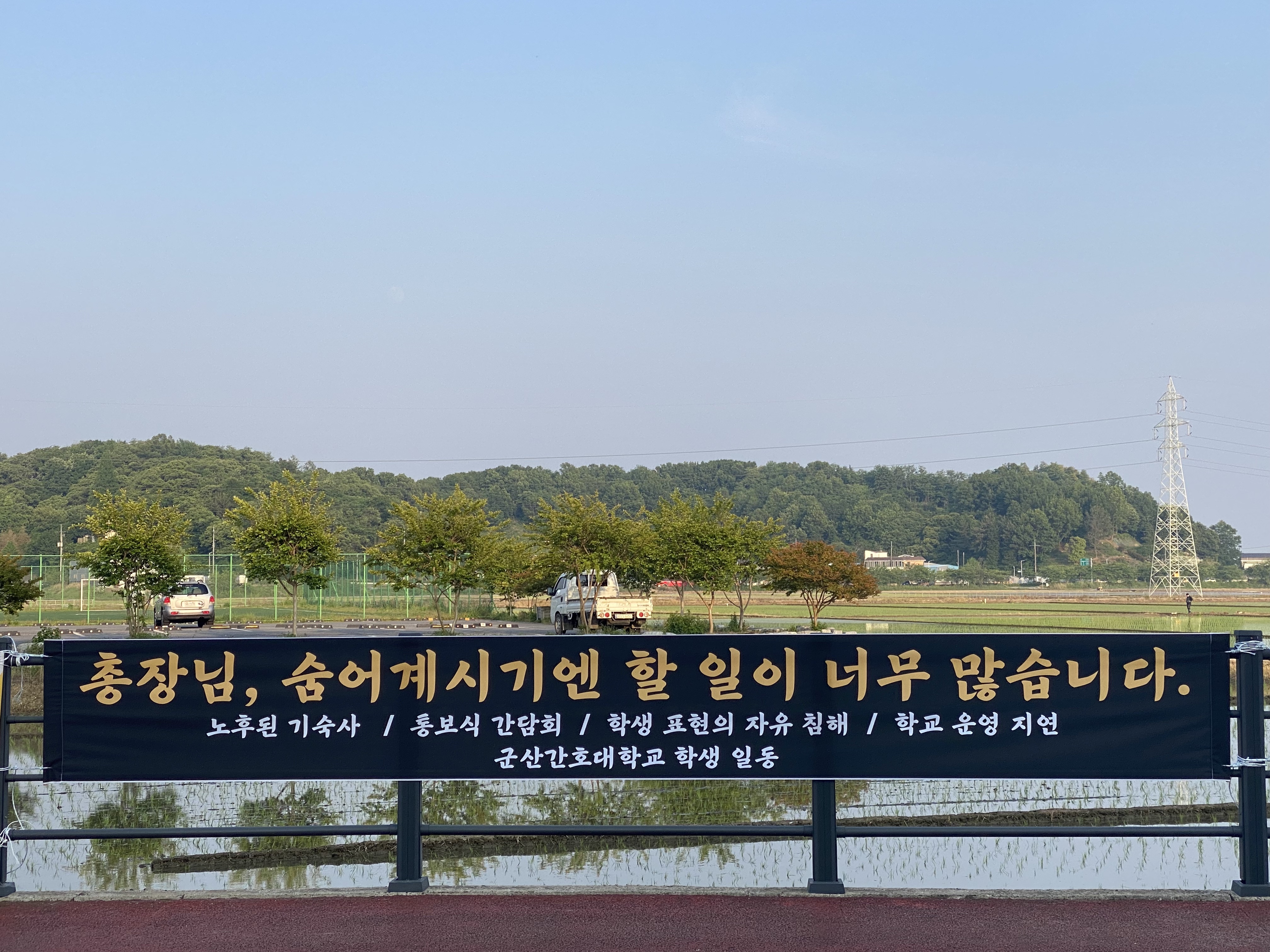 표현의 자유가 보장된 군산간호대학교 학생들이 현수막을 학교 내부에 걸어야 하는데, 학교 내부에는 걸지 못하고, 학교 밖에 걸 수 밖에 없는 이유는 무엇일까요?