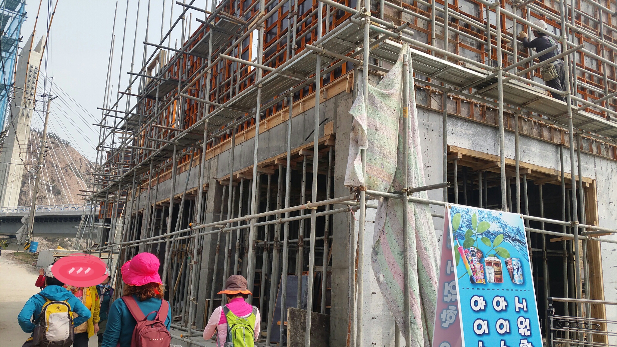 이럴 수가 일요일이라 수많은 사람이 다니는 길가에서 건물을 짓는데 안전망 하나 없이 공사를 하고 있다니..