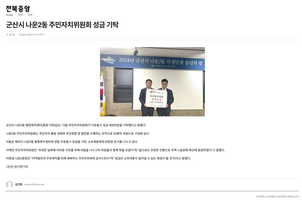 | 342 | 군산시 나운2동 주민자치위원회 성금 기탁 |