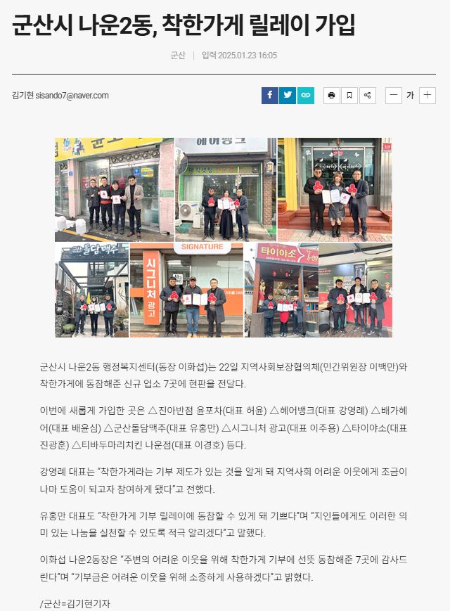 | 345 | 나운2동, 착한가게 릴레이 가입 |