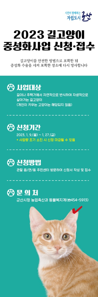 | 23 | 2023년 길고양이 중성화사업 신청접수 안내 |