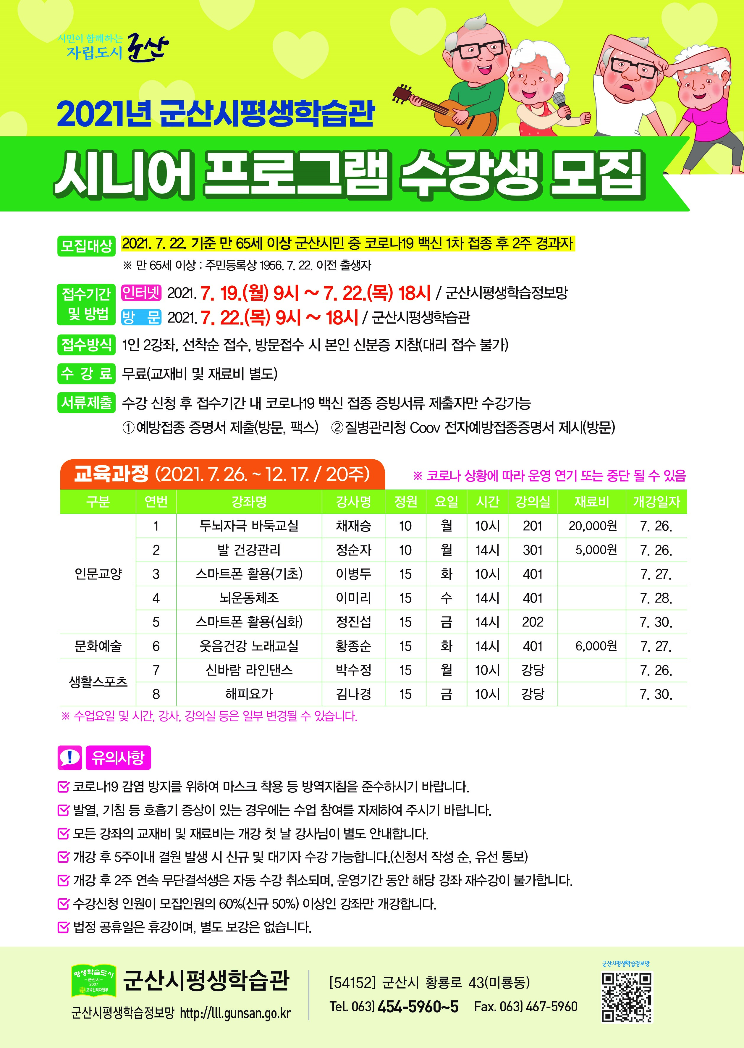 | 484 | 2021년 군산시평생학습관 시니어 프로그램 수강생 모집에 따른 홍보 |