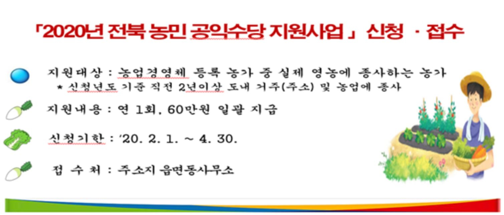 | 40 | 2020년 농민 공익수당 신청 안내 |