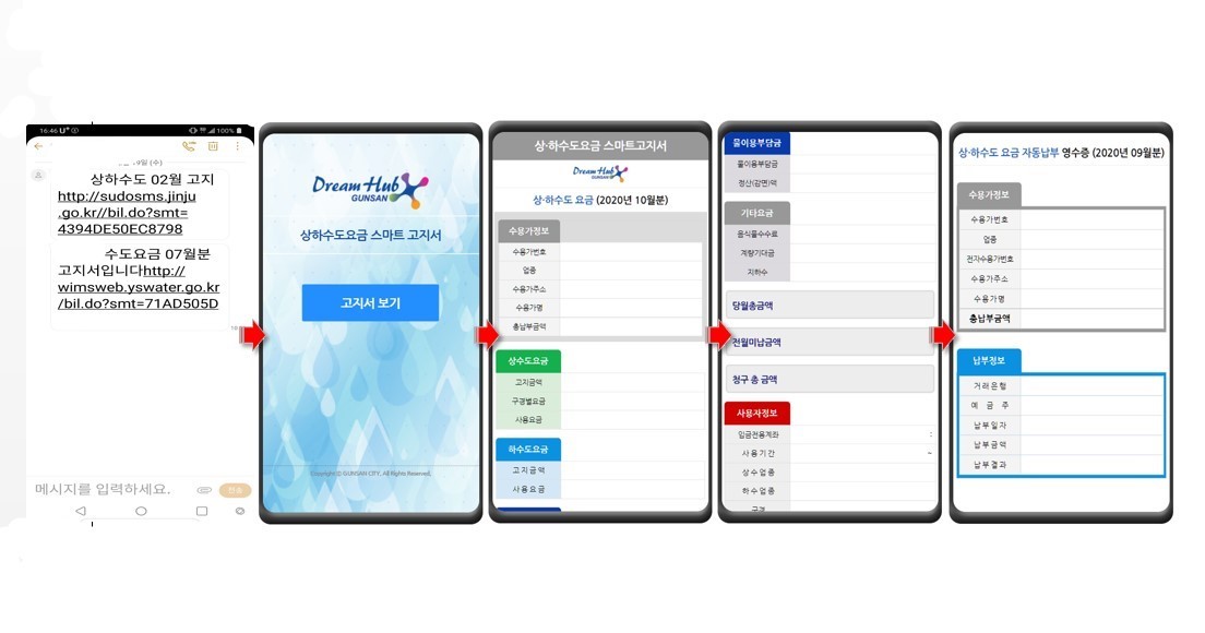 상하수도사용료 종이 고지서 대신 핸드폰 문자로 전송받아