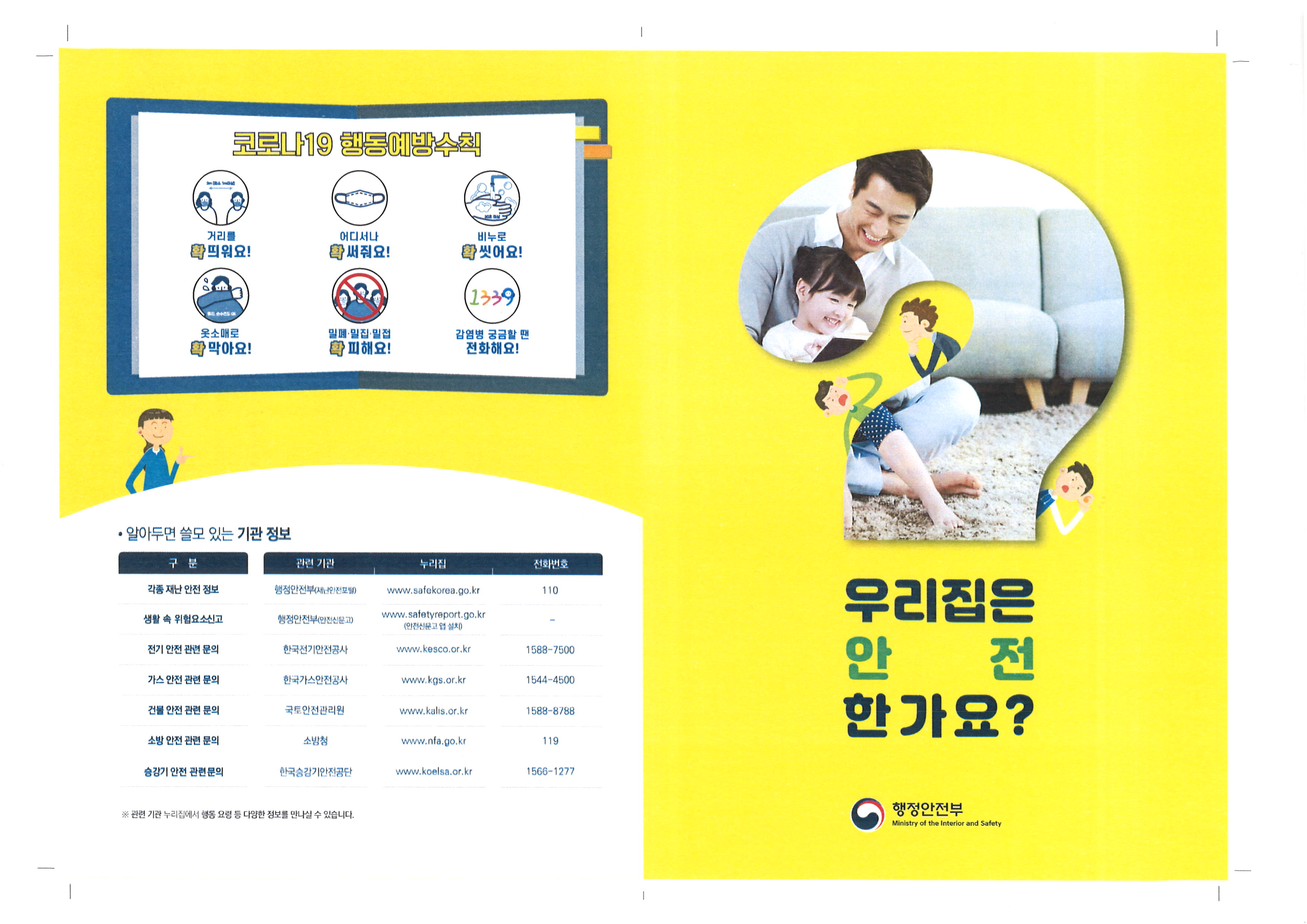 가정용 안전점검표를 붙임과 같이 게시하오니 자가 안전 점검에 활용하여 주시기 바랍니다.