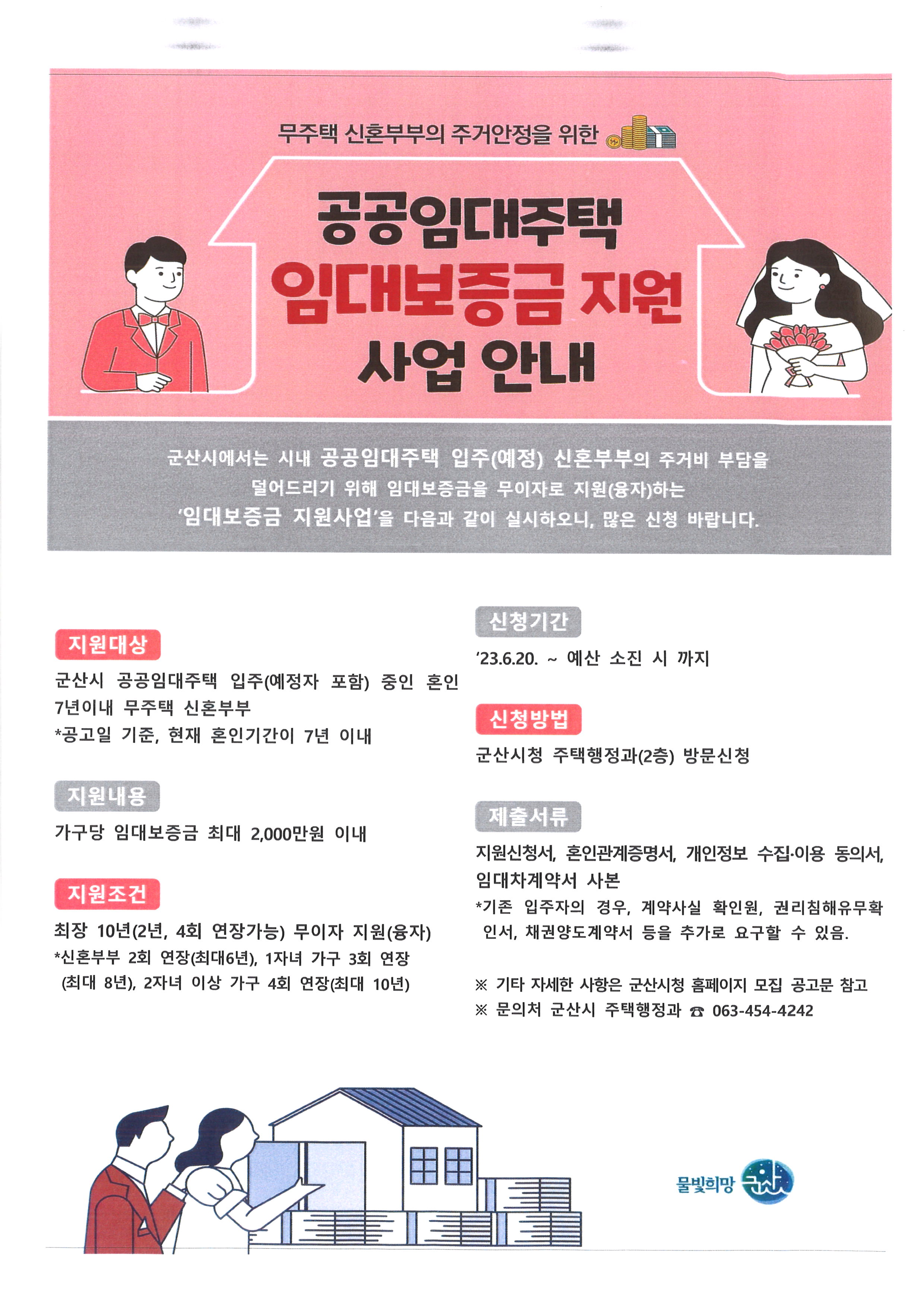 2023년 신혼부부 공공임대주택 임대보증금 지원사업 추가모집 안내