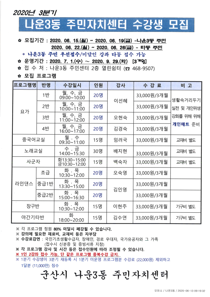 군산시청 에서 제작한 "자치센터 프로그램"저작물은
