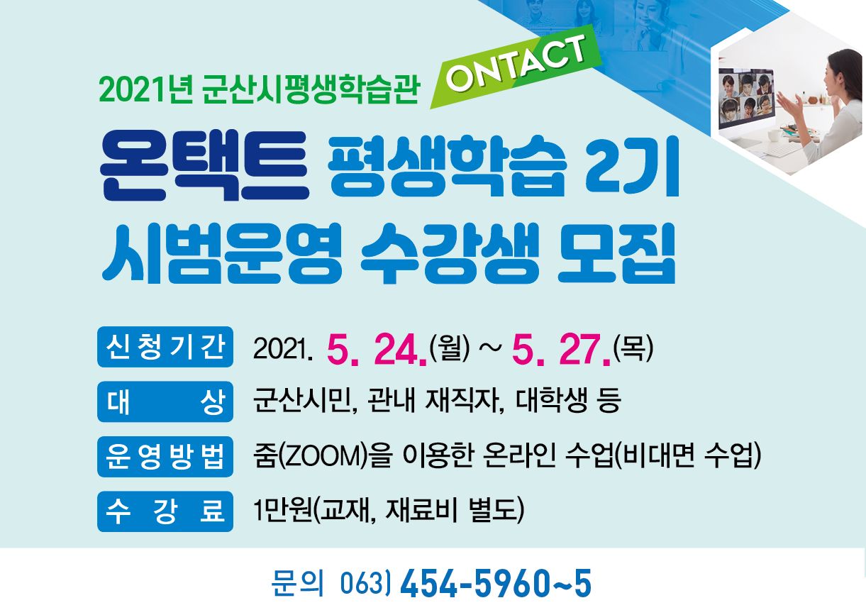 2021년 군산시평생학습관 온택트 평생학습 2기 시범운영 수강생 모집