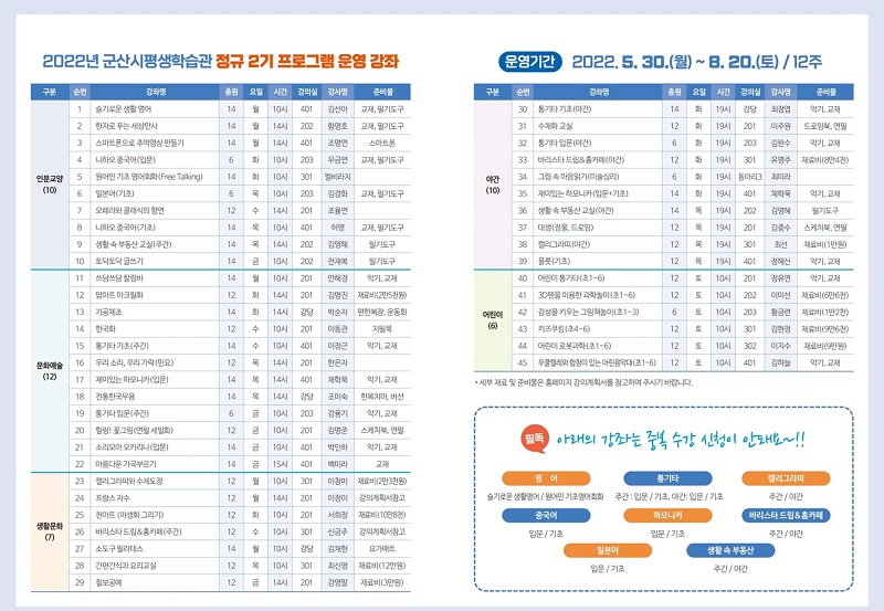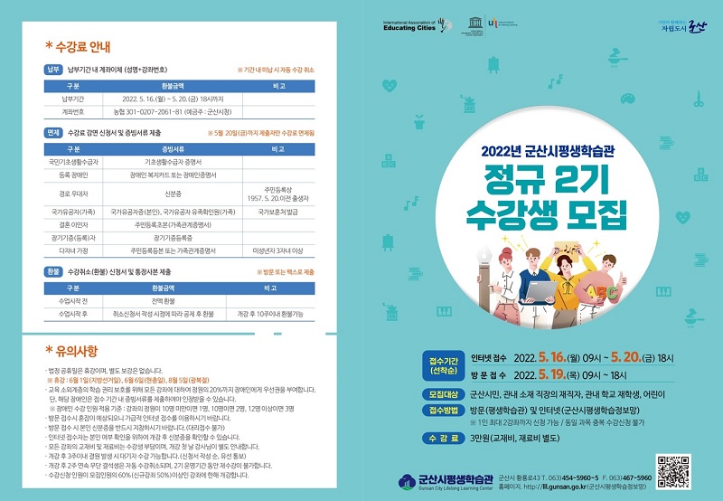 2022년 군산시평생학습관 정규2기 수강생 모집