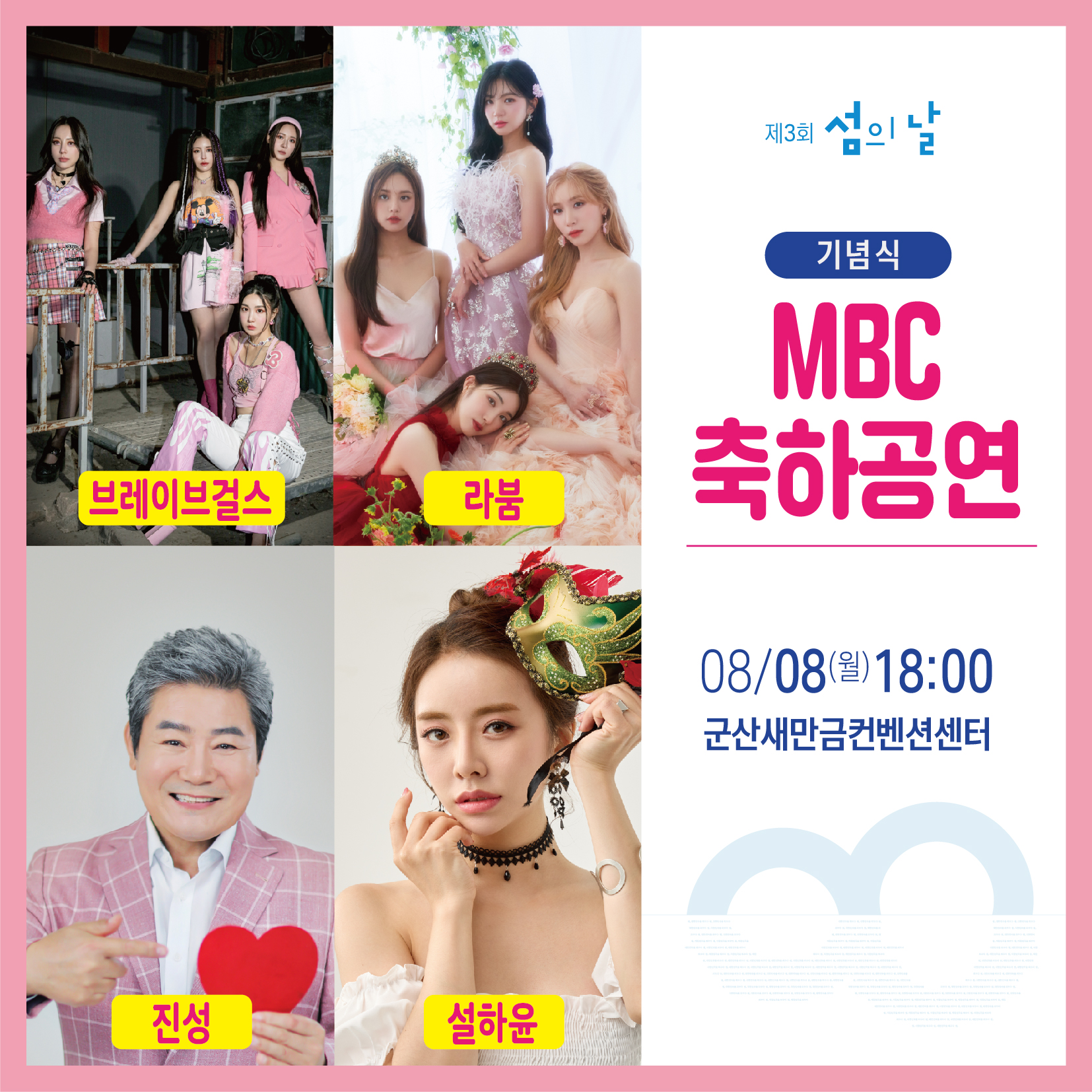 (8.8) 16시 기념식, 18시 축하행사(브레이브걸스, 라붐, 진성, 설하윤) -지스코