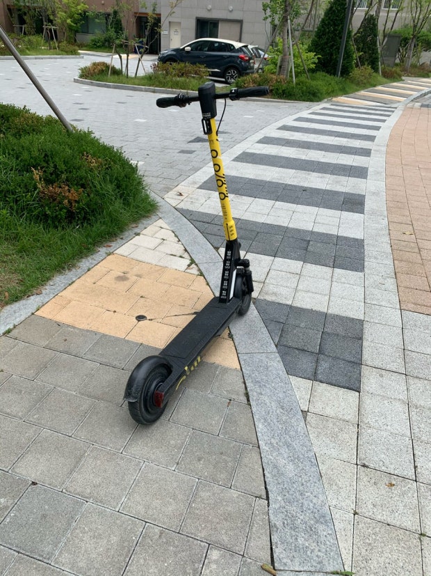 사람들이 전동킥보드를 사용하고 길거리 아무데나 두고가서 발이 걸려 넘어질때가 있습니다.