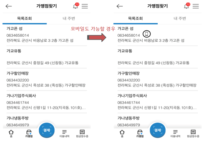 가맹점을 검색할 때 모바일/지류 아이콘으로 가능한지 아닌지를 표시해주셨으면 좋겠습니다.