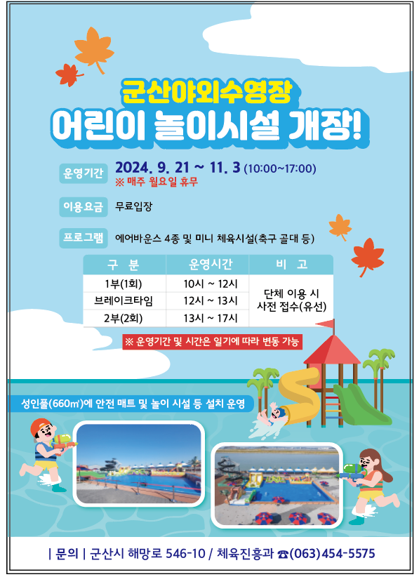 | 231 | 군산야외수영장 내 어린이 놀이시설 개장 안내 |