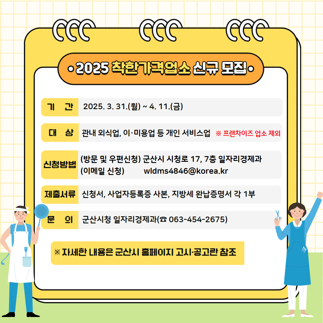 2025년 상반기 군산시 착한가격업소 신규 모집을 다음과 같이 안내 합니다.