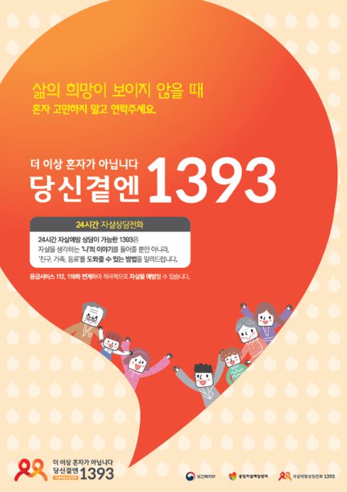 제공하는 [자살예방상담전화 ☎1393 ]을 운영하고 있습니다.