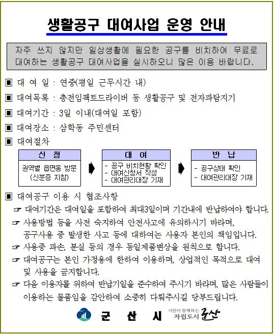 [생활공구 무료 대여사업]을 운영하고 있습니다.