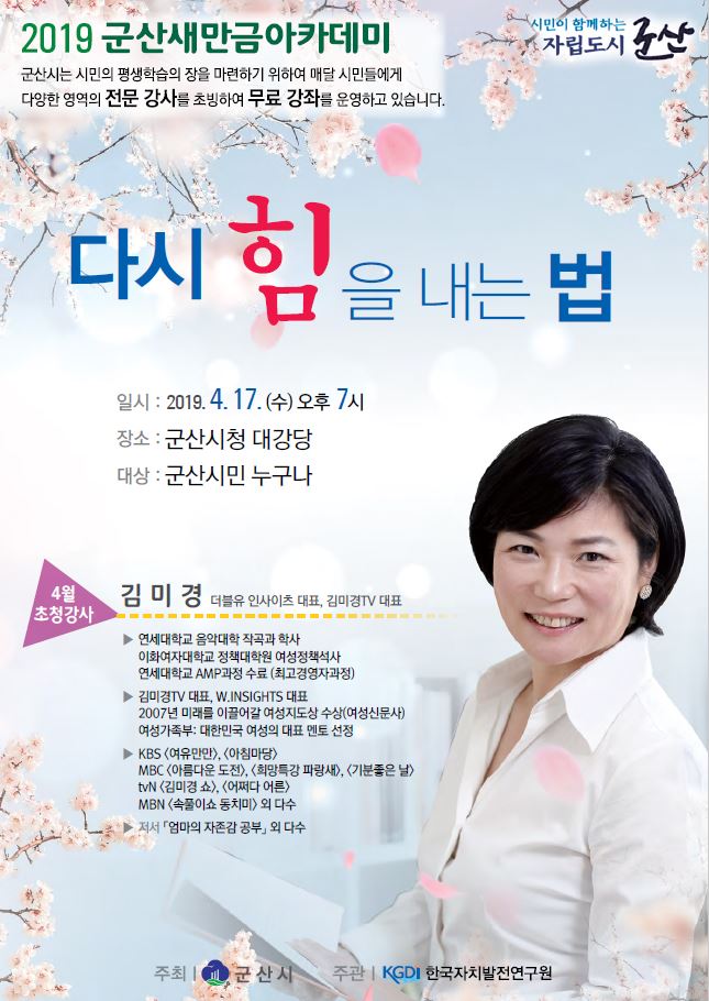 이념을 실현하는 군산새만금아카데미의 2019년 4월 강연을 안내해 드리니