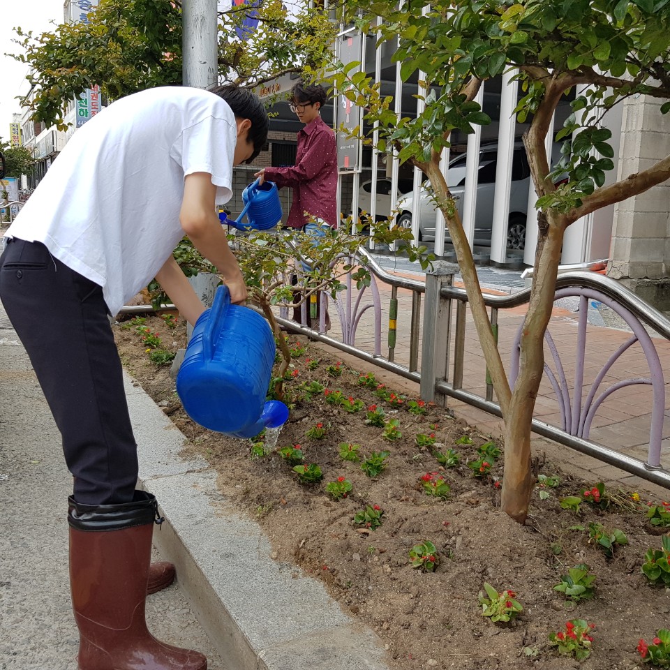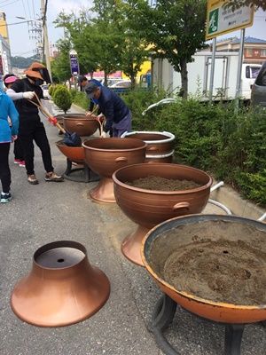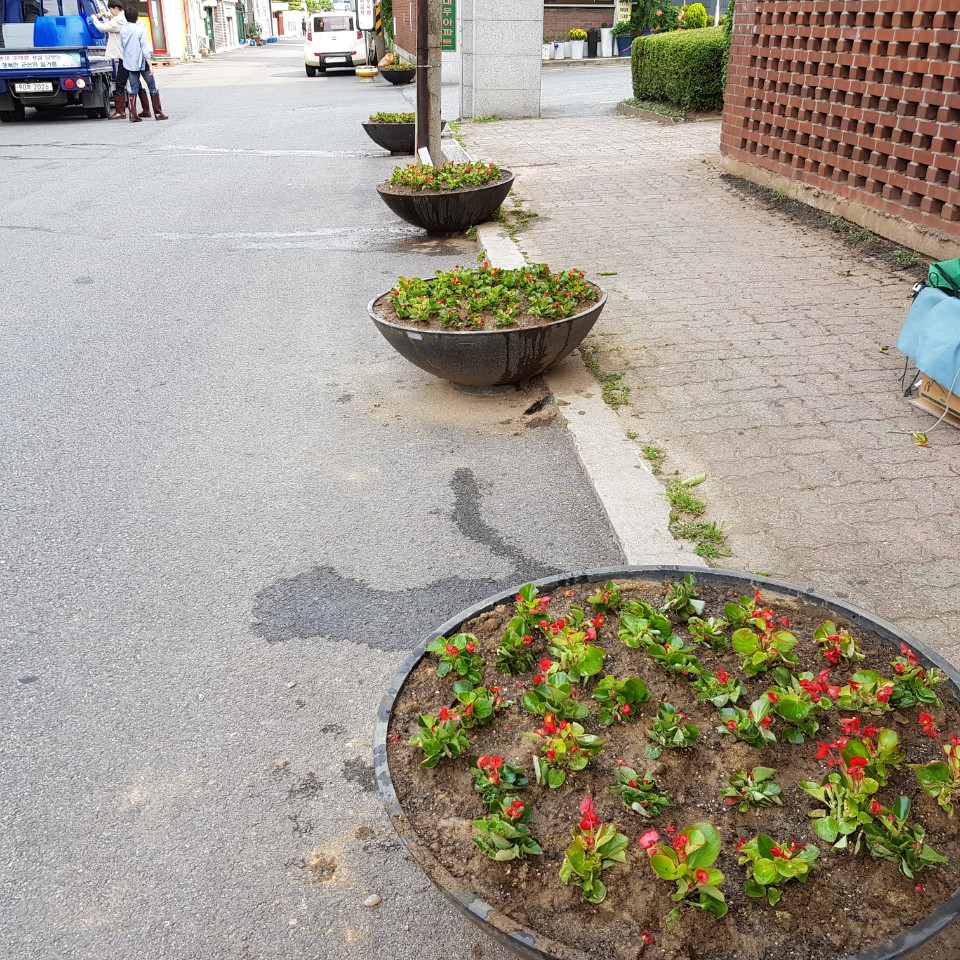 우리동은 여름철 가로환경정비를 위해 도로변 화분을 정비하였습니다.