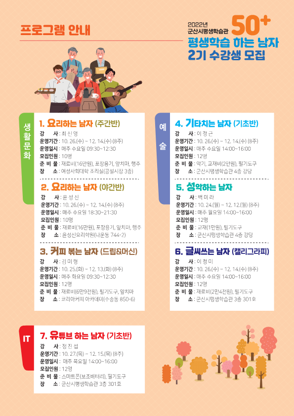 50+ 평생학습 하는 남자 수강생 모집