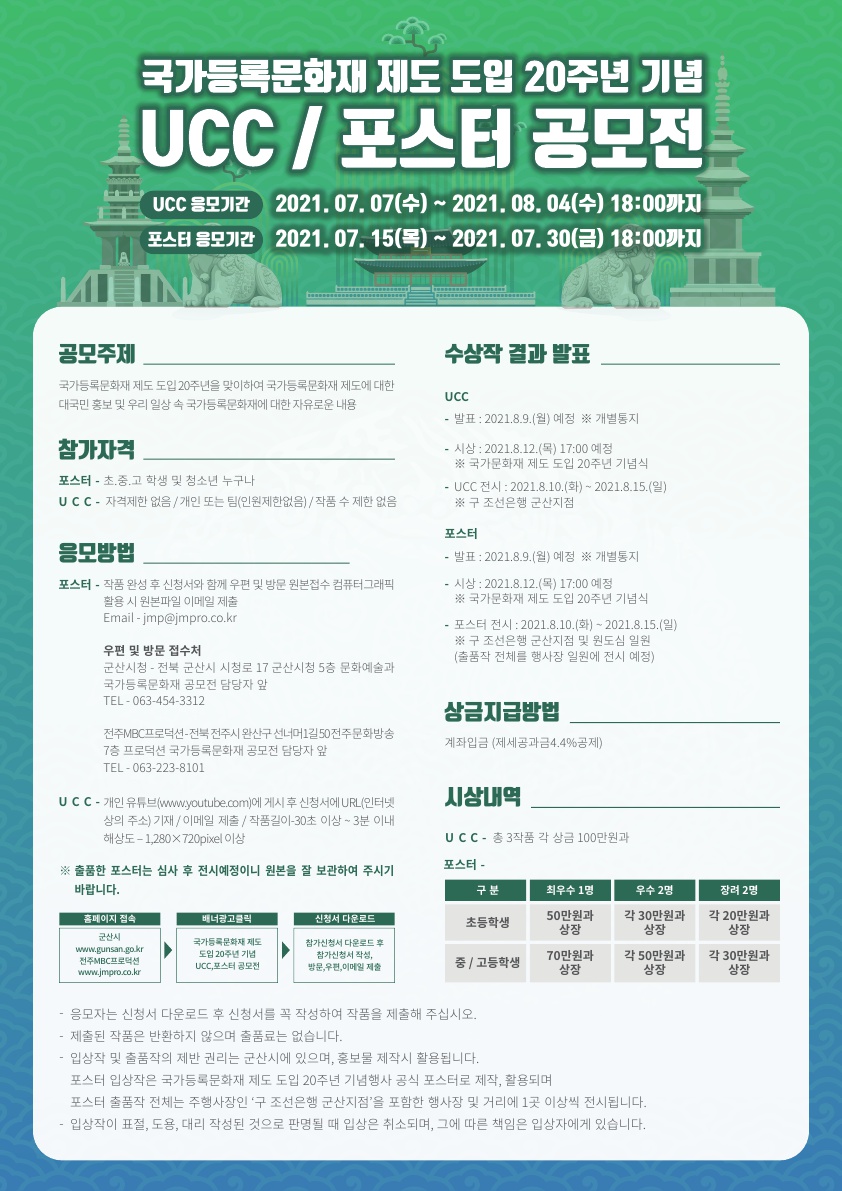 2. 이 행사의 일원으로 등록문화재를 활용한 '군산 홀로그램체험존 운영', 국가등록문화재 기획전시, 20주년 기념 UCC전 및 포스터 공모전, 관내 등록문화재 버스투어 및 20주년 기념식 등 다채로운 행사가 진행됩니다.