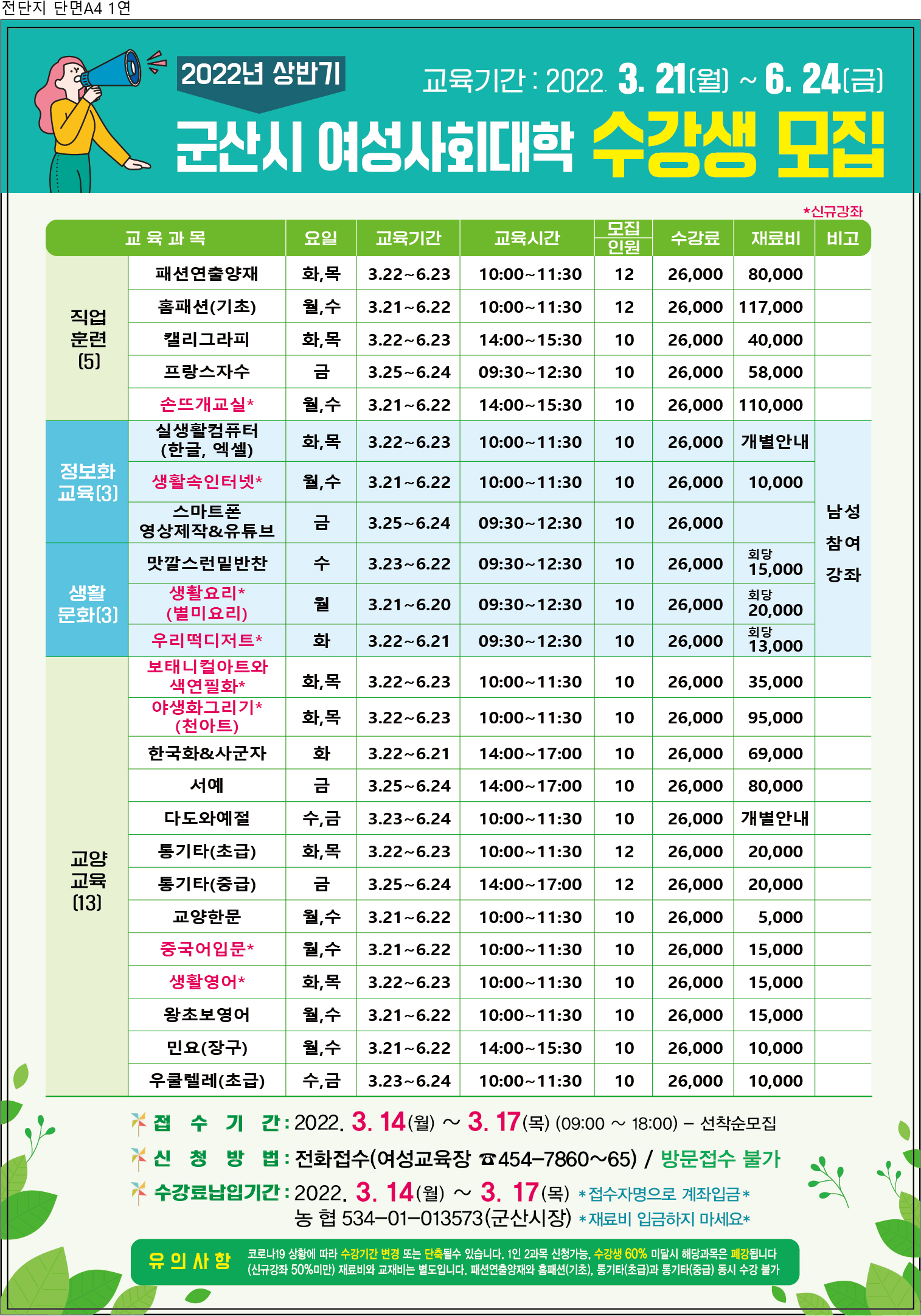 | 35 | 2022년 상반기 여성사회대학 수강생 모집 홍보 |