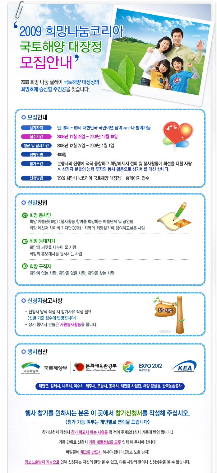 3454 2009희망나눔 국토해양대장정..참가비 없대요. 다운받기 *** 08.12.13 2201