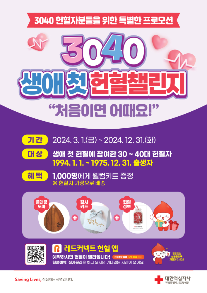 | 62 | 「3040생애 첫 헌혈챌린지」 헌혈 프로모션 안내 및 홍보 |