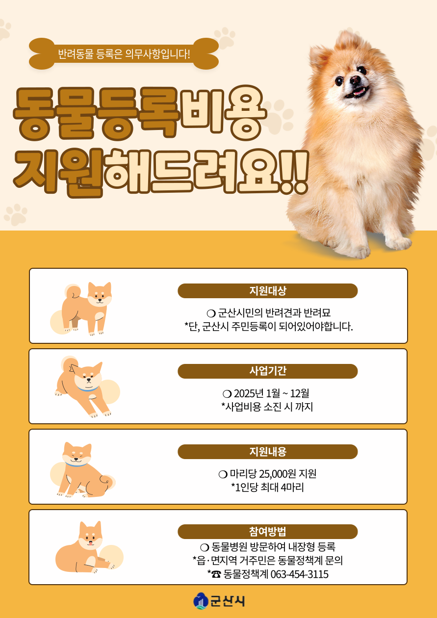 2025년 동물등록 자진신고, 집중단속 기간 운영 및 지원사업을