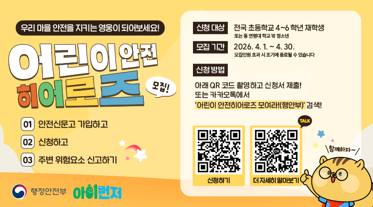 어린이 안전히어로즈 신규모집을 진행 중이니 안전에 관심이 많은 초등학생들의